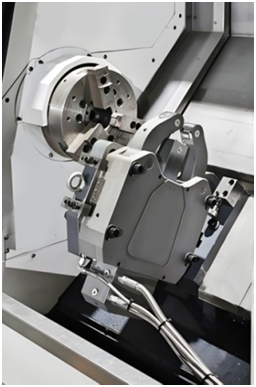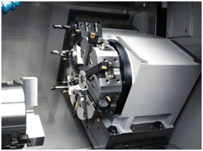 | Großer Servo-Werkzeugrevolver Die HTL-Serie ist mit einem großen Servo-Werkzeugrevolver für kraftvolles Schneiden ausgestattet. |