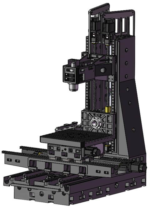 | ■ Maschinenstruktur HV5F-Serie Die Werkzeugmaschinen verfügen über eine feste Portalsäule mit integrierter Bettkonstruktion, die eine weitgespannte H-förmige Portalsäule und eine frontseitig aufgehängte Kastenkonstruktion aufweist. In Verbindung mit einer breiten und schweren Vierrollen-Linearführungsbasis zeichnen sich die Werkzeugmaschinen durch hohe Steifigkeit und hohe Präzision aus. Die gesamte Werkzeugmaschine ist professionell konstruiert und gefertigt, mit Fokus auf niedrigen Schwerpunkt, Verdrehsicherheit und Eignung für schwere Zerspanung. Mithilfe der Finite-Elemente-Analyse (FEM) werden Form und Position der Verstärkungsrippen der Gussteile optimiert, um die optimale Festigkeit des Bettes zu erreichen. Zusätzlich wurden Basis und Y-Achsen-Säule speziell verstärkt, um die Bettstruktur für schwere Zerspanung zu optimieren und die Werkzeugstandzeit zu erhöhen. |